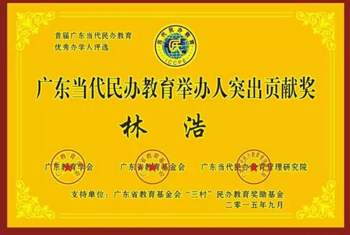 “广东当代民办教育举办人突出贡献奖”获得者林浩同志,现为北京为明学校总裁、北大附中为明广州实验学校创办人。