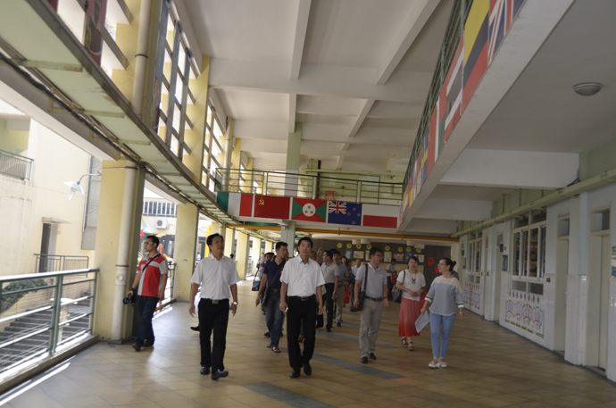 下午14::20分开始,代表团一行参观了学校两个学部的优质课程班教室、美术室、外教室及数字化综合学习室、心理咨询室、校园电视台、图书馆、综合阅览室、团体辅导室等多功能教室。期间,唐根旺主任、王崴主任、黄斌主任向来宾们介绍了学校校本课程的开展情况、学信特色应用等学校特色项目。在考察过程中,来宾们对广州学校的办学特色给予了高度评价。