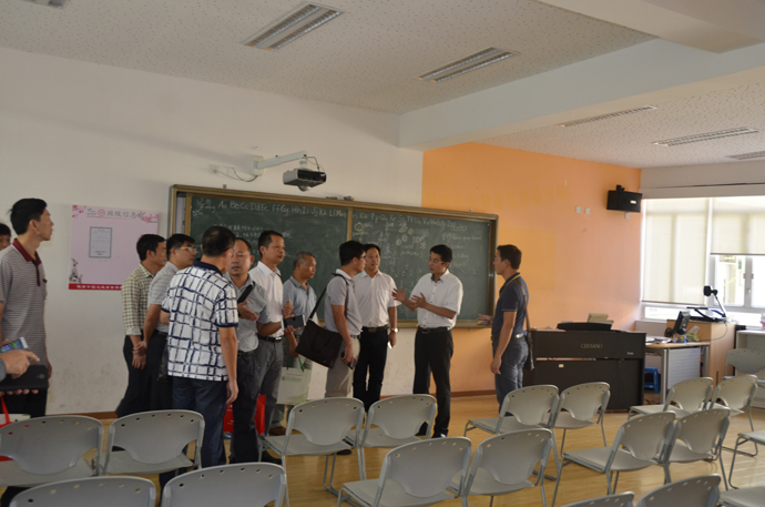 下午15:10,考察团齐聚中学B315小剧场。钟和军副校长做了《基于学校特色建设的校本培训规划及信息化实施》的报告分享。学校“四个平台,十二个实践点”的教师校本培训创新途径,以及“让应用成为习惯”的学校教育信息化建设,都给来宾们留下了深刻印象。
