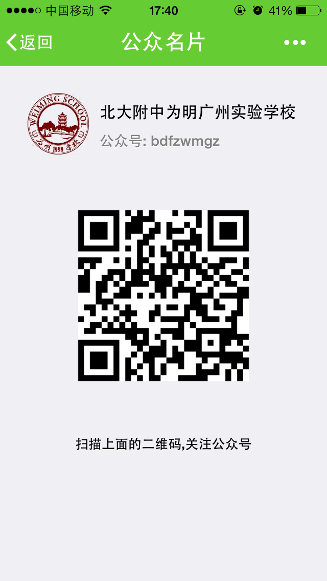 3、 用学信软件扫描下面二维码,关注学校公众号: