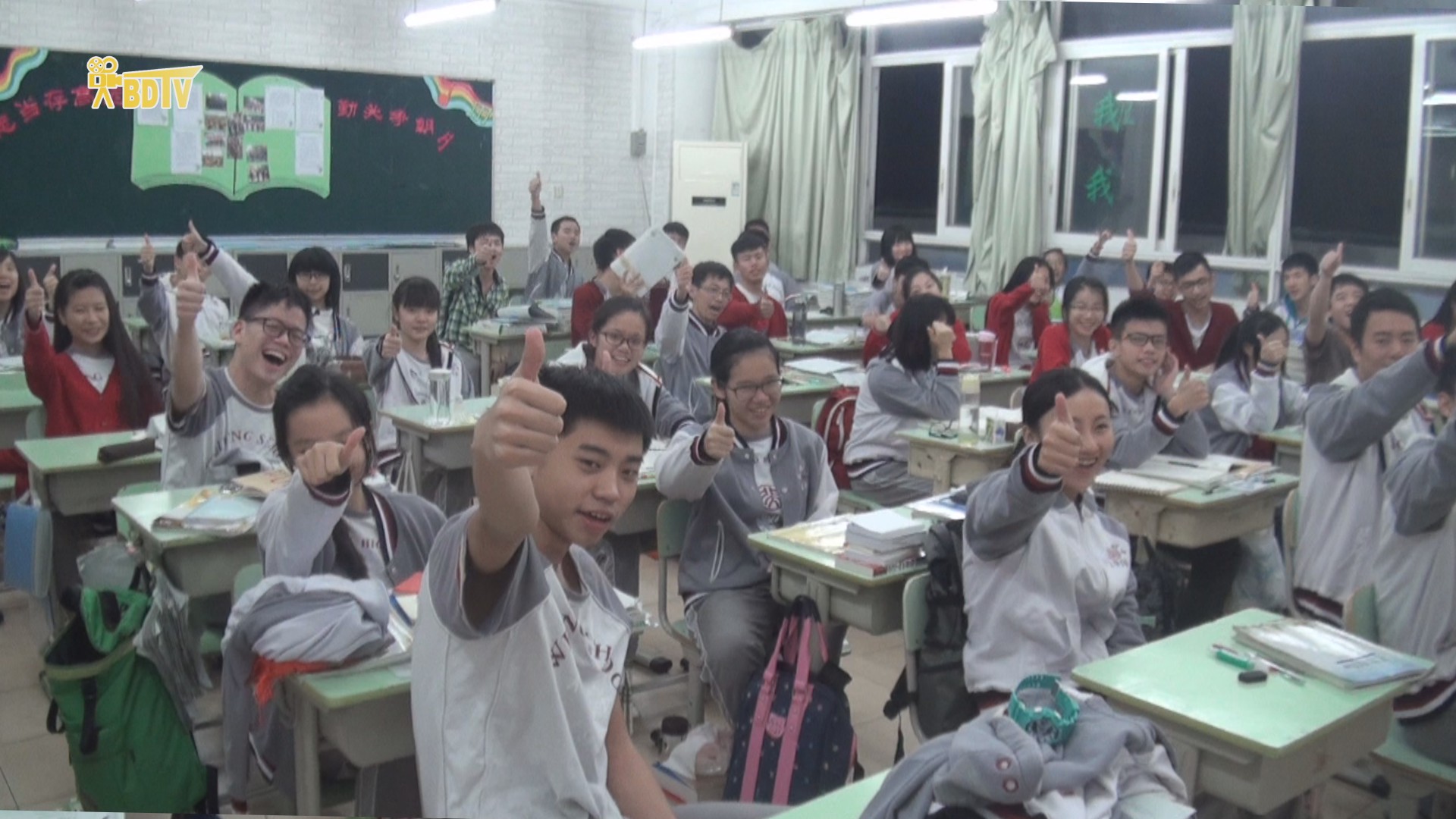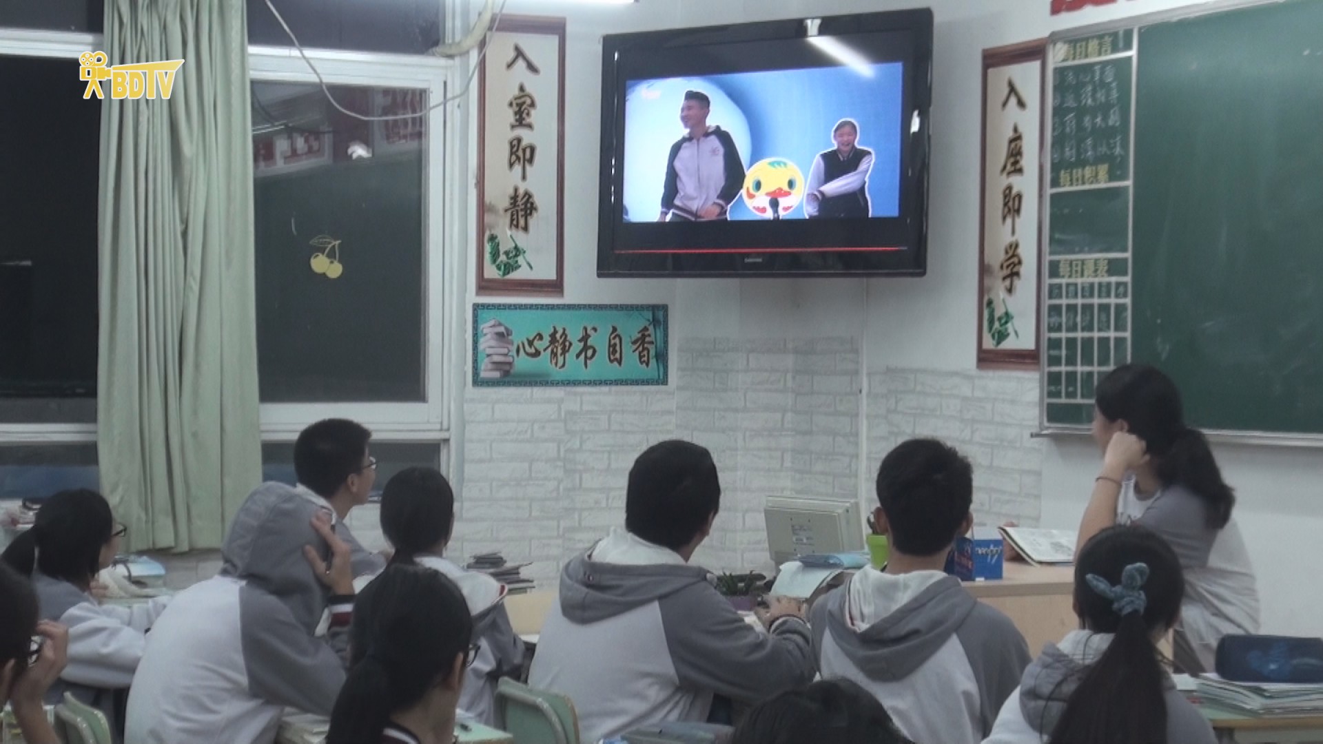 报道了“每日一题”,接下来《校园新闻》又向大家介绍了高中部的“每日一名言”,公共平台上的小黑板每天更新富有哲理的名言,给备战高考的同学增添了许多士气,充分彰显学校对同学们的人文关怀。