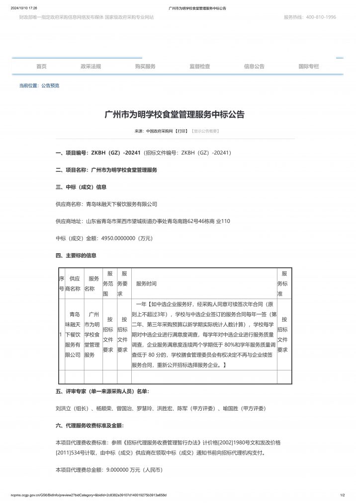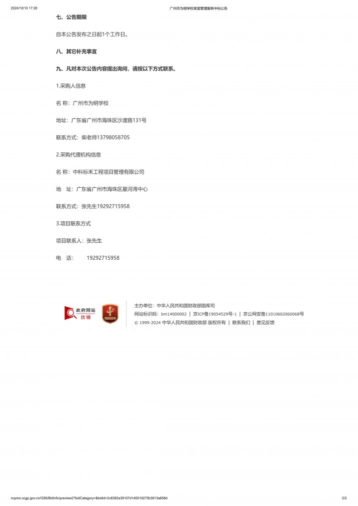 广州市为明学校食堂管理服务(公开招标)招标公告