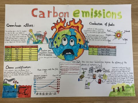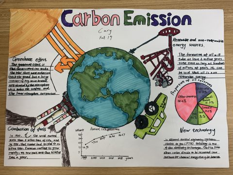 A:例如,学生通过设计一个信息图表(infographic)来展示自己掌握的碳排放的相关知识,并作一个五分钟的演讲。学生可以在整理信息设计图表的过程中学习碳排放对于地球的影响,并理解不同碳排放之间的联系,理解科学与社会的相互作用。从收集信息、整理资料、设计图表到最后的演讲展示,皆由学生自主完成。设计图表使得学习的过程变得不再枯燥,增加了学生学习的趣味性,而演讲可以锻炼学生的口才,增强自信。学生通过收集信息可以学会如何去检索文献资料,这对于未来进入大学学习是必备的学习技能。此外,学会分门别类,把种类相同的信息整理到一起,在当今资讯爆炸的社会里是吸收和学习知识的良好途径。而老师,在这个过程中,只是作为引导者为学生提供一些帮助。