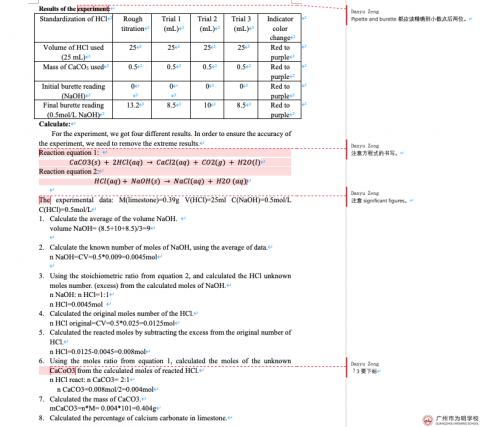 A:学生做过溶液溶解度和导电性测试、焰色反应、滴定分析大理石中碳酸钙的含量、分析汽水的酸碱度、电镀铜实验……学生在实验前我会首先讲解安全注意事项,学生需要自主设计实验方案,包括实验目的、步骤、安全注意事项等;在实验过程中,学生通常2-3人合作,作为实验的主体,老师不过多干预实验,只是在学生遇到瓶颈时适当给予指引,让学生通过小组合作完成实验操作,实验后单独完成实验报告。