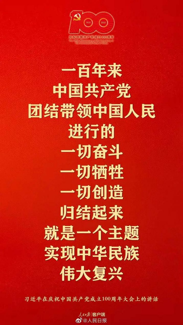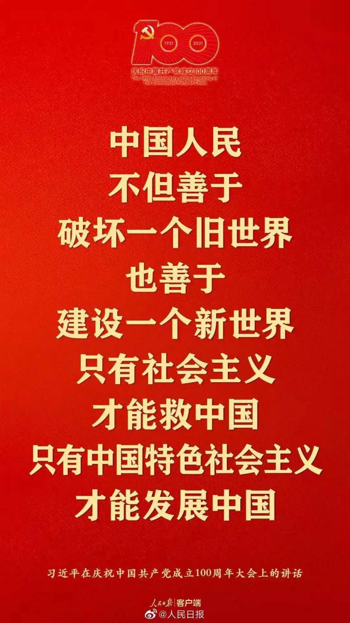 习近平总书记在庆祝中国共产党成立一百周年大会上的讲话金句