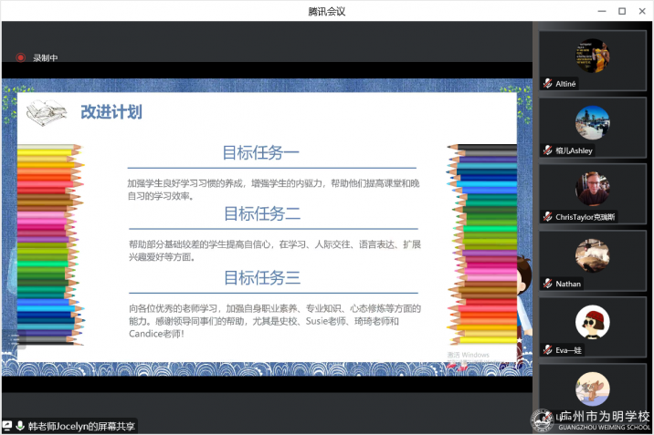 为总结反思,进一步提升教师退伍的凝聚力,全面复盘本学期工作,为下学期工作提供经验。1月7日上午,国际部全体教师举行了线上期末述职会议,共同回望一学期的付出与收获。
