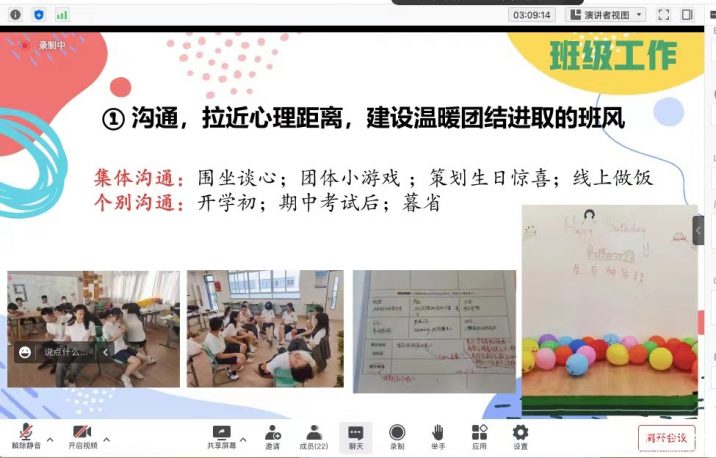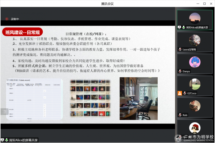 首先,国际部班主任们围绕一学期以来,班主任工作的亮点进行一一分享,抓常规重反馈,谈思路展成果,每一张PPT都记录着班主任们的努力与奉献,用爱书写学生成长与进步。国际部的班主任们专业、敬业,将行之有效的工作方法、严而有爱的教育故事娓娓道来。