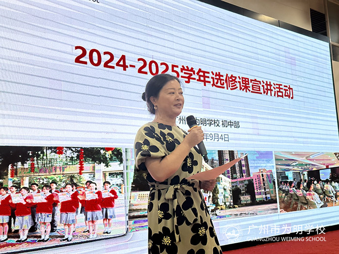 在本次选修课宣讲活动中,初中部展示了多达27门课程,覆盖艺术、体育、科技等多个领域。多年来,初中部的选修课设置与时俱进,经过不断调整,已经形成了一套完善的课程体系,极大地丰富了同学们的初中生活。为了帮助同学们全面而直观地了解各门选修课,并做出符合个人发展需求的选择,学校信息中心开发了一个自主选课平台。当天,初中部教导处龚斌主任为大家提供了详细的选课指导。