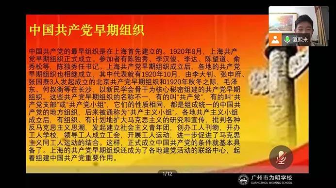 最终,课程圆满结束,同学们深有感触,大家纷纷表示将继续追随红色史迹的初心使命,不断增强理论修养和使命感。会后,我校团委书记王斌老师对同学们的发言做了点评。刘飞主任对此活动给予了表扬及肯定并表示每周的上团课,学党史,跟党走,结合疫情防控、居家学习要让团员先动起来。