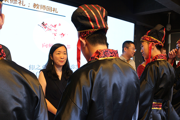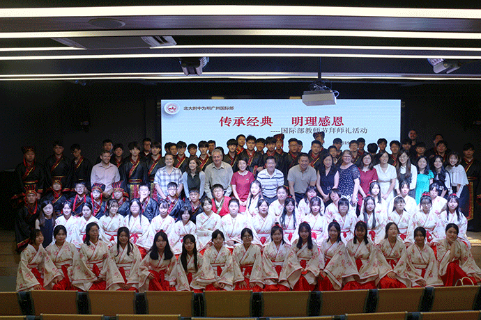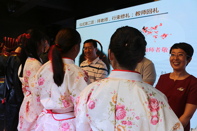 泱泱华夏五千年,尊师重道自古就是我们中华民族千古传承的美德。为了加深学生对中国传统文化的了解,国际部全体学生在教师节到来之际回归经典,复古拜师礼,感恩教师情,用一场庄严的拜师仪式向老师们送上了与众不同的节日祝福。中学部于晓东副校长、中学部樊主任、国际部史桂娟等领导老师出席了本次仪式。