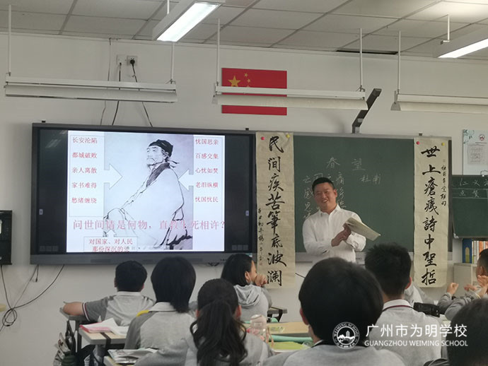 杨伟平老师执教的《春望》,通过引导学生领悟作者家国情怀,忧国忧民的思想感情,进行爱国主义教育;充分调动学生对学习传统文化内涵的兴趣;运用书法,诗朗诵,结合经典诗句进行赏析。教学手法丰富多样,学生诗歌朗读热情洋溢。杨老师用创作的一副毛笔字对联作为开头,酣畅淋漓,最后又以创作的《读春望》现代诗激情朗读收束全文,画龙点睛,把对杜甫诗歌的赏读带到高潮。杨老师的这堂课,吟诵经典,诗意浓浓,可谓亮点颇多,灵性与厚重齐飞,激情与睿智共舞,成为师生共同成长的美秒生命场。