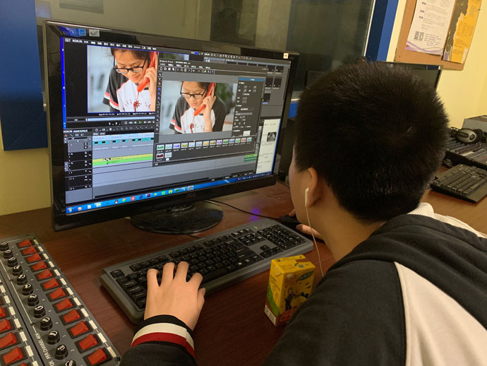 初中部微电影课程声名远播。2019年5月刊《学校品牌管理》杂志全面介绍了我校微电影课程,并推荐《梦想从这里起飞》在全国学校品牌大会上展映。在龚卫平老师和陈杰任老师的组织下,向阳影剧社和其他同学选送了包括中小学教师参演、初二(5)、(7)、(8)班制作的《惊奇来电》、初二(7)、(8)班集体制作的《寻猫记》、初一(8)班谢新等《重庆研学》和初一(7)班蔡忻蔚等《天堂来信》等多部校园微电影参加粤港澳大湾区微视频大赛。这次同学们创作的微电影大多以家庭亲子关系为主题,在编剧和剪辑制作方面都表现较为成熟。期待他们会取得良好的成绩。
