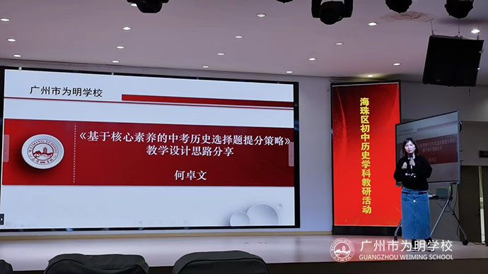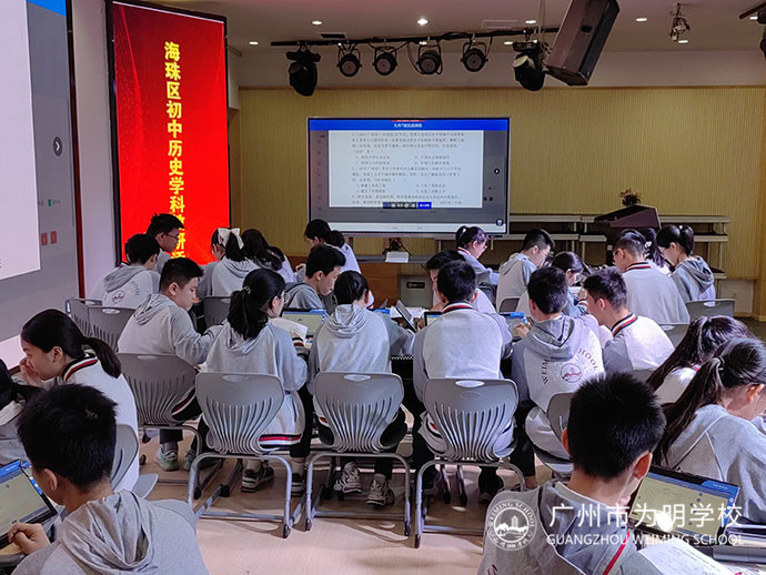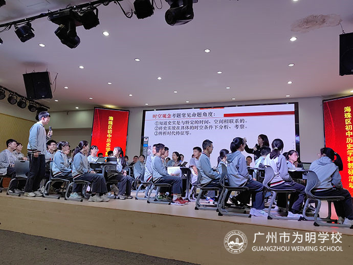 3月30日,海珠区第八周历史学科教研会在广州市为明学校学术报告厅隆重举行。我校初三历史骨干何卓文老师精心选择科研课题,历史组教师同心研究核心素养落地的课堂措施,师生合力为海珠区教研呈上一堂有益于落实新课标,助力中考备考的核心素养教研示范引领课堂,也展示了为明新课堂的独特魅力。