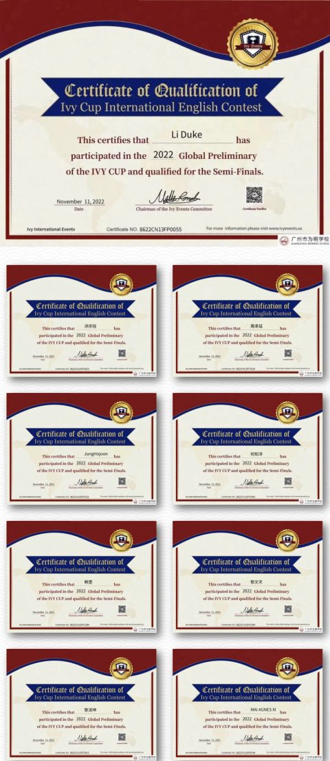 近日,国际部学生在2022常春藤国际口语大赛全球海选中脱颖而出,十五位同学以优异成绩入围半决赛!