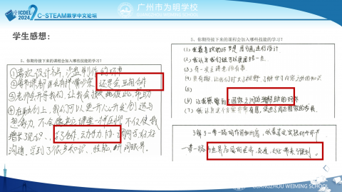 此外,我们的课程项目加入中国教育技术协会“十四五”规划重大课题《粤港澳大湾区STEM教育协同创新的理论与实践研究》并成为其子课题项目。在广州市海珠区教育发展研究院科学教研员许广玲老师的引领下,我校与梅州大埔县大东实验学校进行了深入合作,共同开展了两地协同课程。这一举措不仅为学生提供了更加丰富、多元的学习体验,也促进了优质教育资源的共享与互补,实现了教育资源的优化配置。