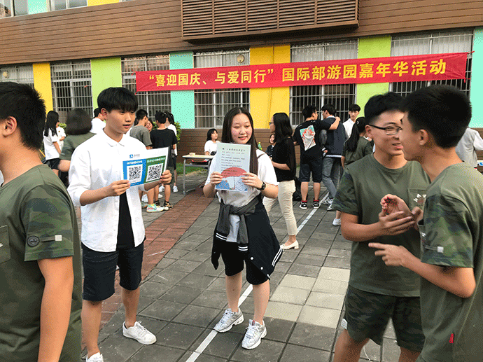 此次活动由国际部学生政组织策划,活动前期动员、宣传、场地的布置与收尾均由学生政府成员独立带领同学们完成,在此次活动中的所有盈利收入将会用作公益用途,用这一爱心之举为祖国七十周年献礼。