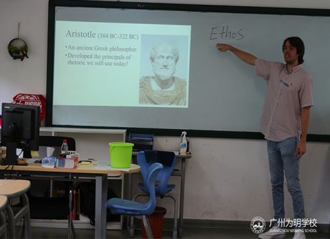 “如果你是莎士比亚,罗密欧和朱丽叶出生在现在的广州,他们之间会有不一样的结局吗?试着写写看”“想象一下,你是罗密欧……” Max老师在他的语言文学课堂中,用戏剧强化学生对创造力的领悟。“我想看到学生自己的故事!”学生的思维在戏剧中拓展,戏剧不再是“经典重现”,而是被重新构建、演绎。Max老师用创设情景、角色扮演和即兴表演来引导孩子更自信、更勇敢、认知得到更全面的成长。