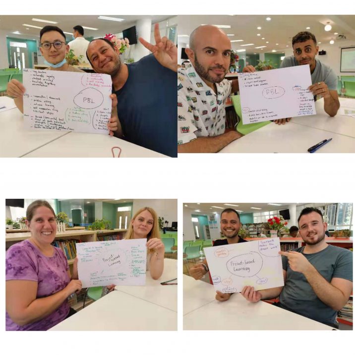 在培训的过程中,外教老师们通过两两分组进行合作探讨,就什么是项目式学习?为什么要采用项目式学习的方式?如何进行项目式学习操作?这三大问题进行探究,并通过思维导图的方式,呈现出他们各自精彩纷呈的思考。项目式学习的落脚点并非只是对知识的理解记忆,而是对学生的信息素养、批判性思维能力、解决问题的能力和创造力,终身学习的能力、合作探究等核心素养的培养。