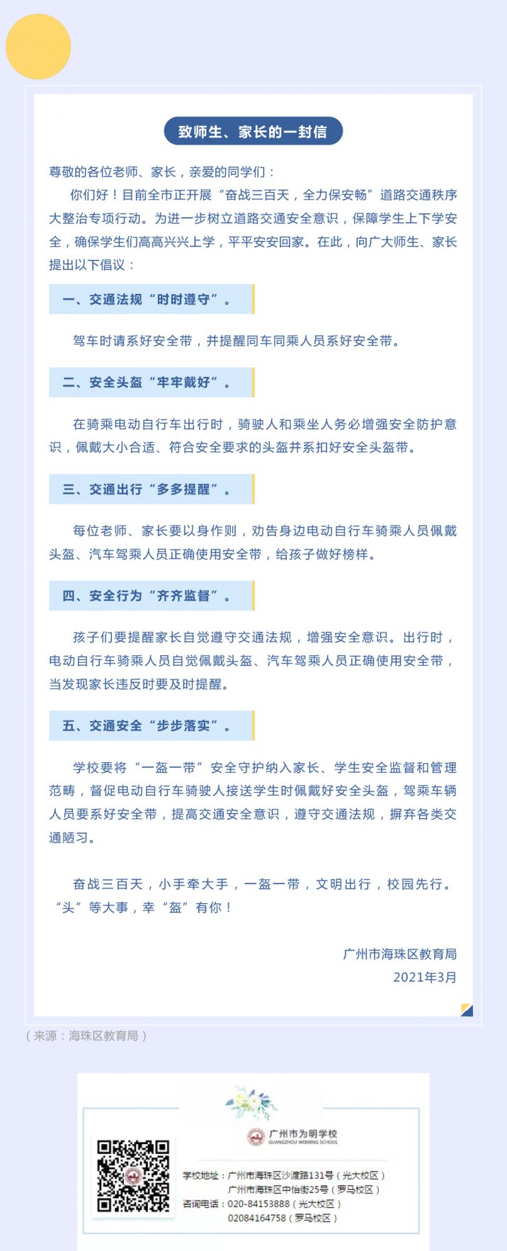 “奋战三百天 一盔一带 校园先行” ——海珠区教育局致师生、家长的一封信