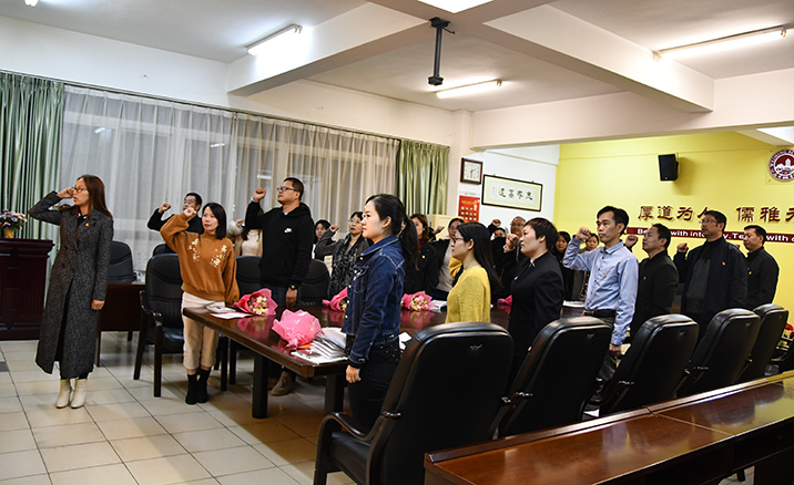 在学校党总支刘飞委员的带领下,全体党员重温了入党誓词。在庄严的宣誓声中,会议圆满完成!