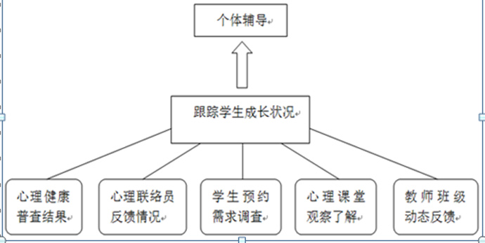 个体辅导是心理教师为有个性化需求的学生提供的一对一心理服务,我校通过心理普查、心理课堂、心理联络员等渠道关注学生心理动态,并根据学生实际情况,展开相应的专业心理辅导。