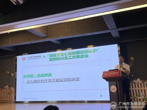 最后,王礼维校长对本次心理健康协同防护体系的构建专题工作会议给予高度评价并做了总结讲话。王校指出心理健康教育工作要顺应时代发展的需要,与学生相处时注意反思是否存在认知方面的偏差,站在学生与家长的角度思考问题,强调生命的重要性。另外,王校长再次强调了“为明SMILE学生心理健康防护体系”的建设,指出心理普测、心理建档、日常防护、学期动态筛查、预警干预、应急处理及危机善后的重要性及作用。