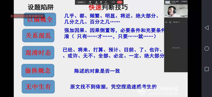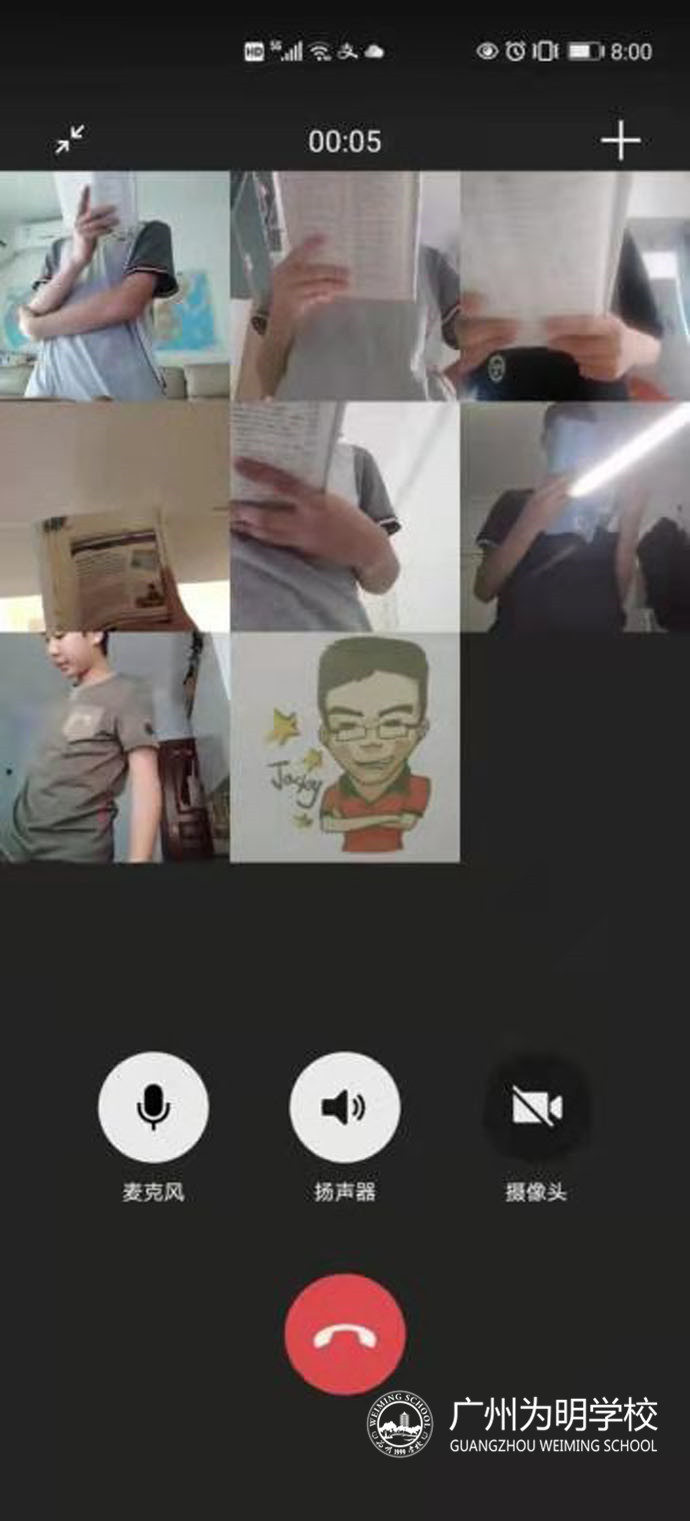 在组长的组织下,我们都能够准时地进入到课堂中。当然,小组讨论是必不可少的,我们的讨论场地从教室转移到了视频通话上,即使是在家里,在有限制的视频通话中,也抵挡不住我们积极激烈的讨论,同学们,在争论中互相学习,探索知识上的新领域。