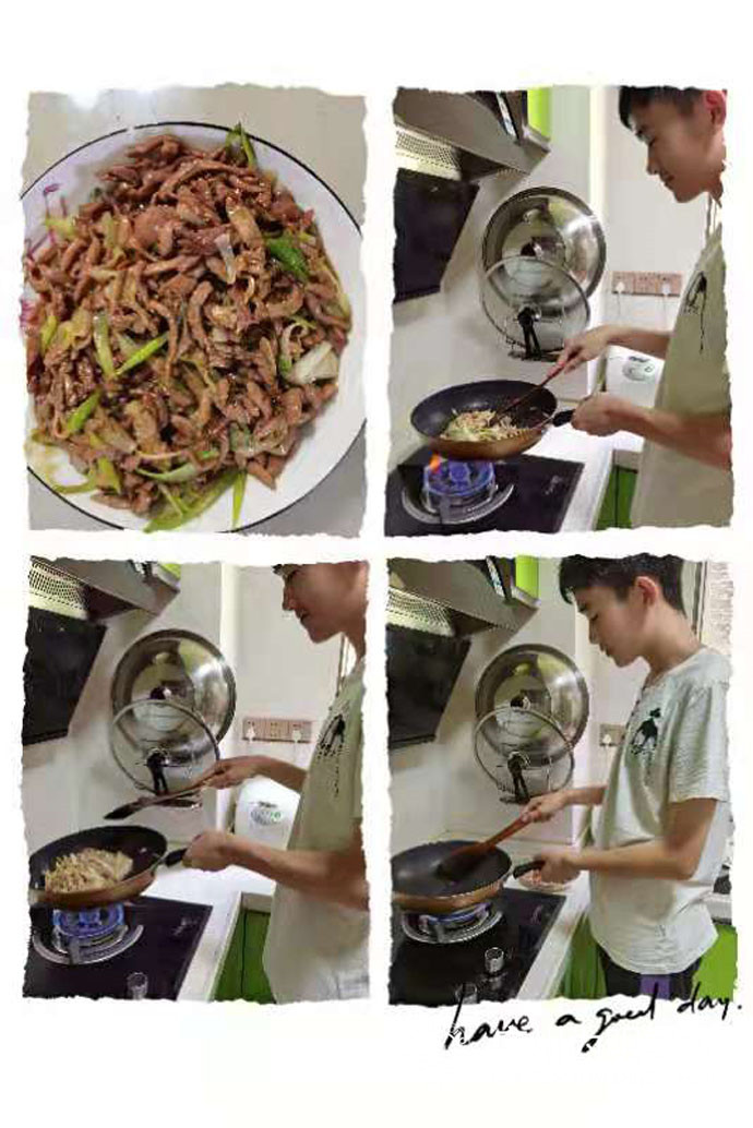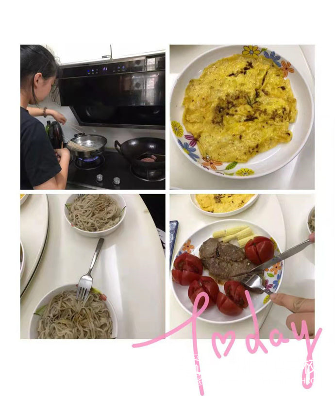 (疫情来了,人人都得要当一回厨子!同学们也是时候展现自己真正的技术啦!这一个个辛苦的背影之下,做出了一道道美味的佳肴。)