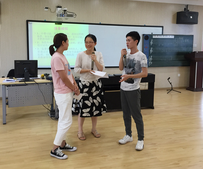 接着,讲座结合教学实际情况,带领老师们详细解读“当孩子以不当行为寻求权力”时,教师的感受、学生的行为表现、教师的应对、学生的反应、学生的信念、传递的密码信息……那,面对这样的学生,我们该如何进行沟通互动呢?讲座以老师们的真实案例为脚本,再现了师生矛盾的若干经典场景,并邀请老师们分组表演如何有效应对。为组出战的老师代表们生动演绎了师生互动的过程,呈现很多值得借鉴的应对方式。无论是置身其中,还是置身之外,老师们都可以从中观察、感受、体验、反思,从而内化更多积极主动、赋予力量的回应方式。