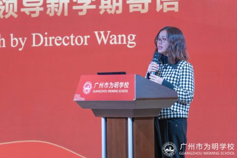 校长助理兼国际部主任王英女士发表了热情洋溢的开学致辞,她首先表达了对新同学的欢迎,对全体国际部学子提出了新的期望,并鼓励学生们在新的学期里继续努力学习,追求卓越。