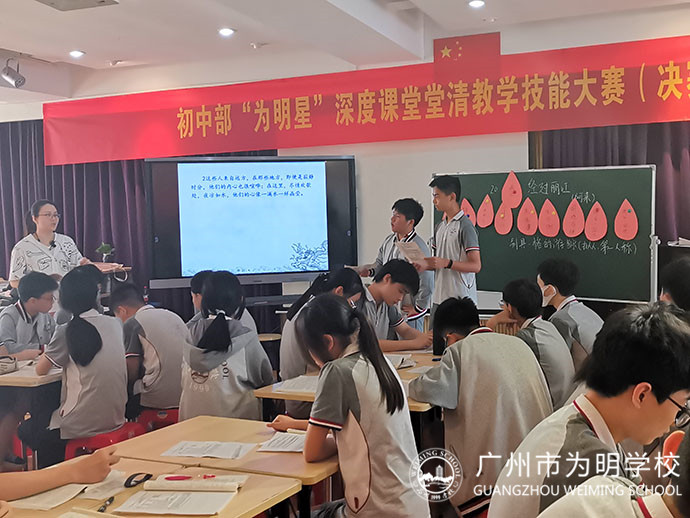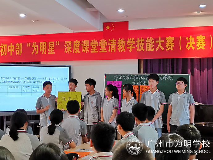 本次“为明星”深度课堂教学技能大赛已圆满结束。作为为明人,我们一直没有停止课堂改革的研究与实践,我们也将继续发挥“三备两研"、开放包容创新的优势,在高效“6+1”课堂及目标导向式的学生自主学习课堂的基础上,进一步开展以“堂清”为抓手的课堂质效项目研究,实现课堂质效的可评可测,从而达到提升教学质量的目标。