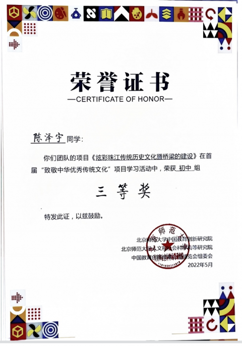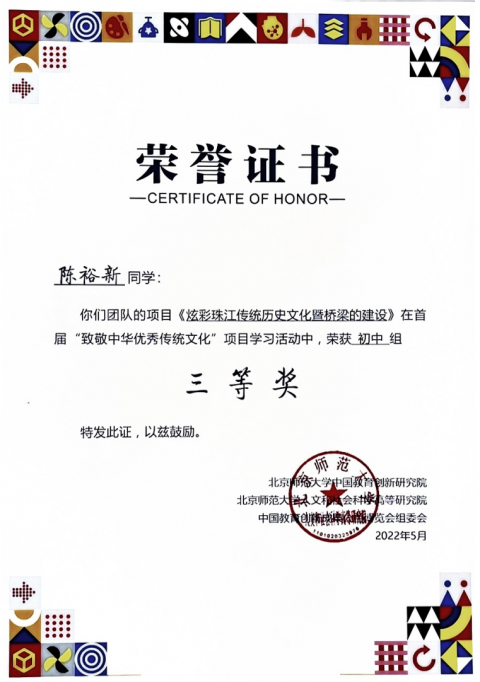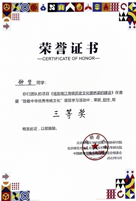 炫彩珠江 熠熠生辉 |我校学子在首届“致敬中华优秀传统文化”项目学习活动竞赛中获全国三等奖