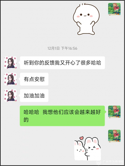 在温馨的鼓励氛围中,家长开心地看到了学生的进步,同样也会开心的与老师分享学生的成长。