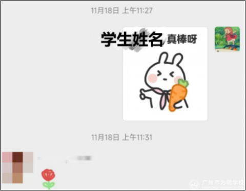 作为科任教师,Lynn老师经常将学生的优秀表现反馈给班主任老师、并得到了班主任老师的大力支持。如下面图片所示,班主任老师得知后不仅自己很开心,还会另外再表扬孩子们,并且及时的把喜悦分享给家长们。
