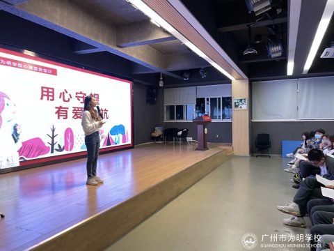 继3月中旬的光大校区初中部心理委员培训之后,2022年3月24日晚上在罗马校区礼堂,心理咨询室牵头组织了本学期第一次班级心理委员(含高中部、国际部)的专题培训,由我校罗马校区专职心理老师邝佩莎主讲。