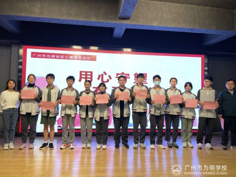 与此同时,邝老师也叮嘱心理委员要关注自己的心理状态,及时调整,做好自我保护。关怀他人,勿忘自己,照顾好自己。培训活动的最后环节,国际部史桂娟主任和高中部德育孔二虎主任代表学校为心理委员们颁发了聘书,并为孩子们加油打气。