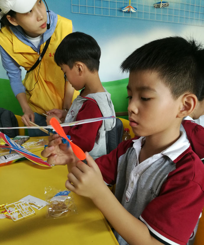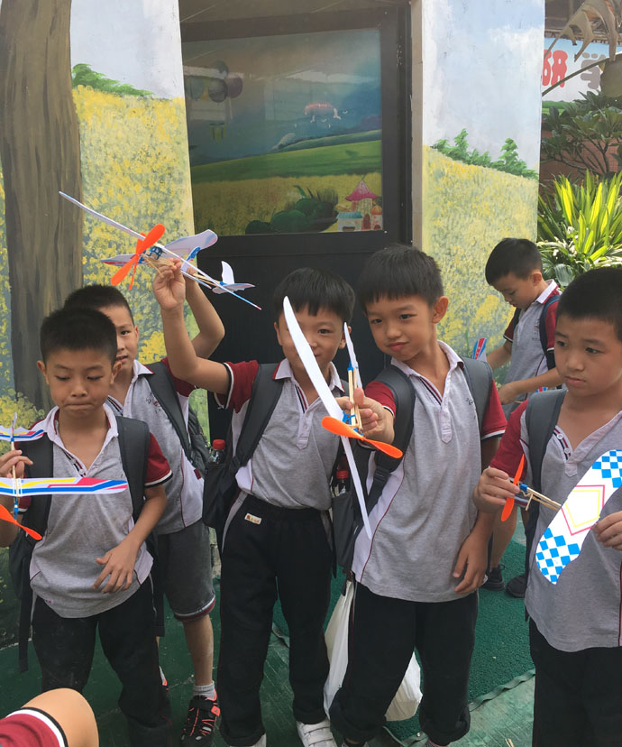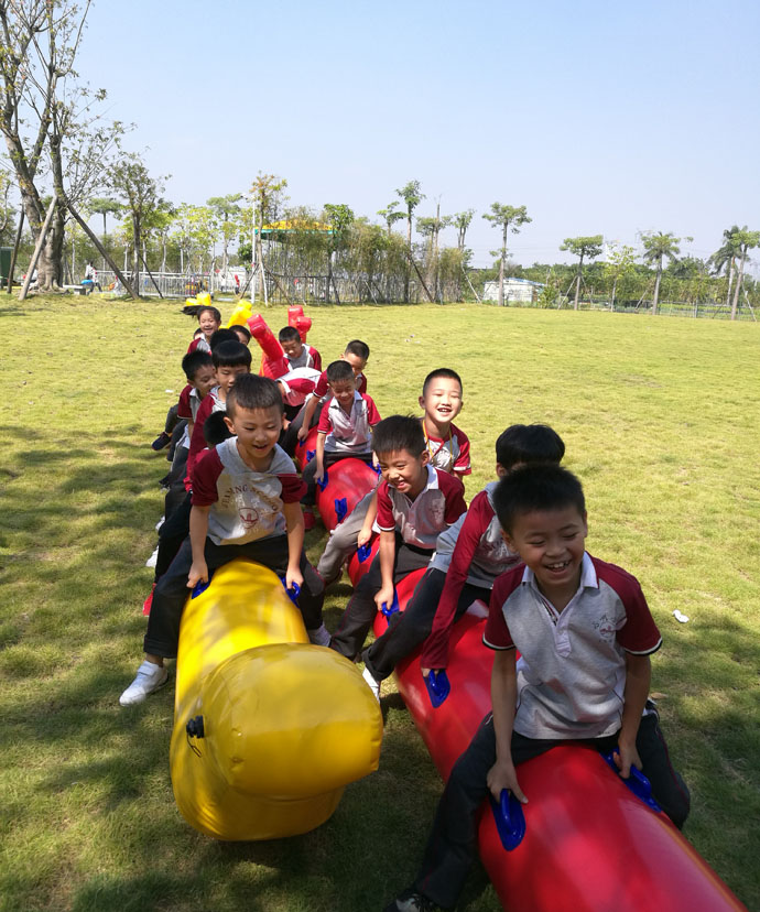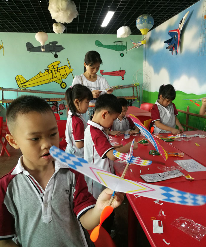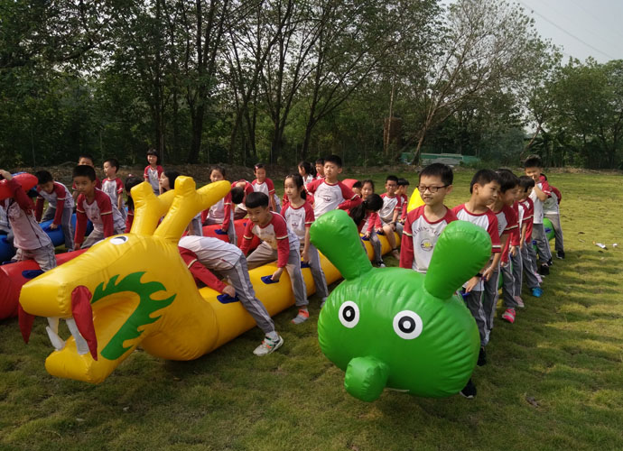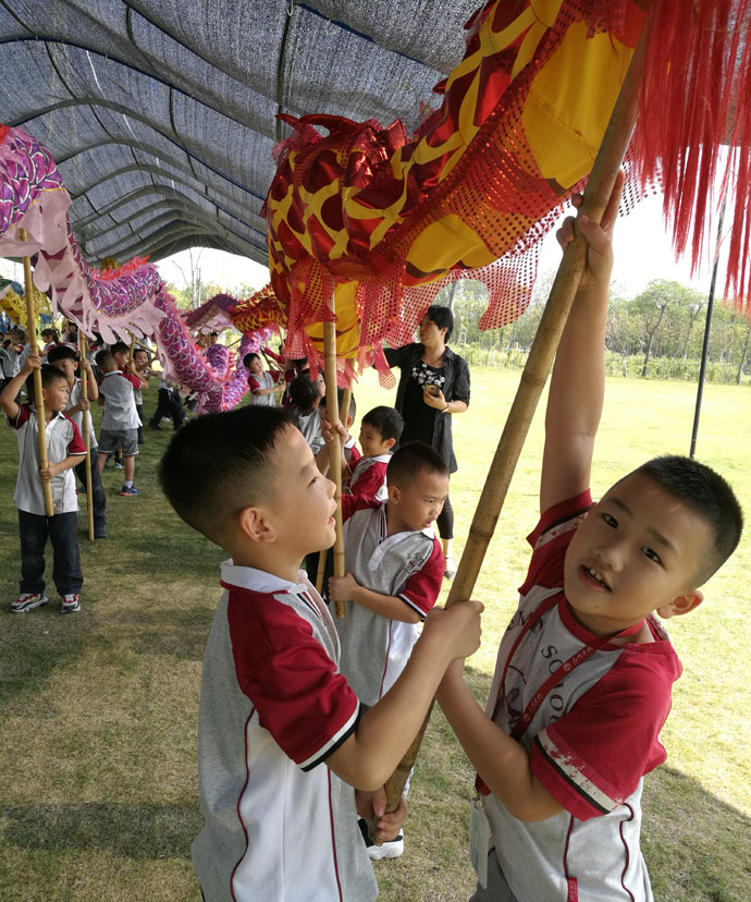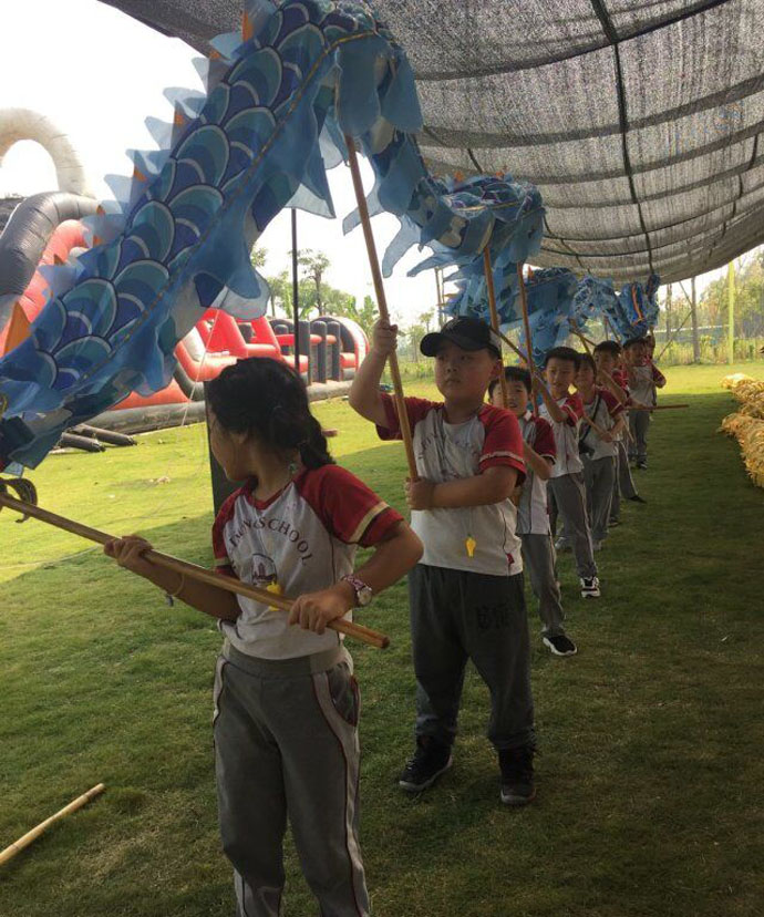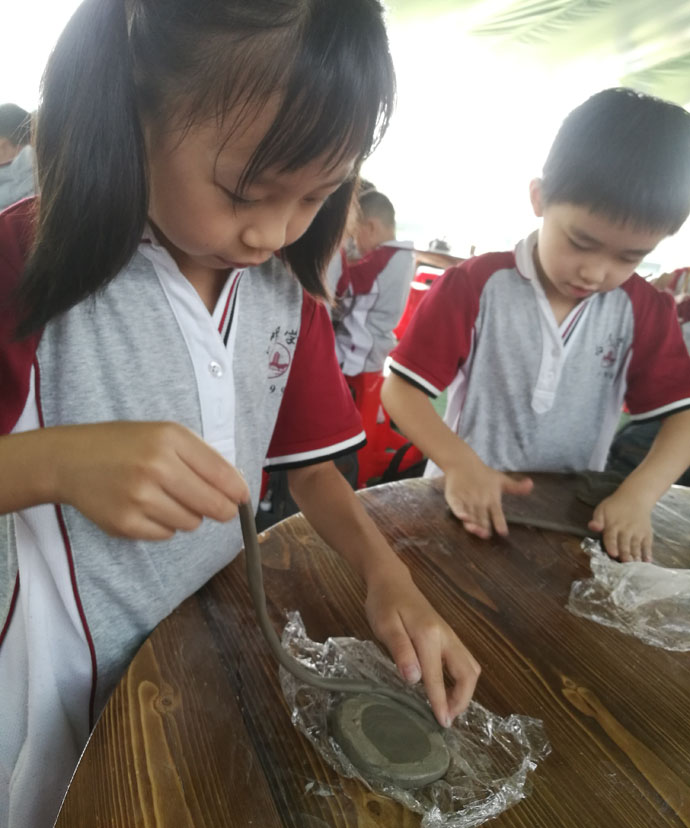 到达园区,在导游和工作人员的带领下,一二年级的孩子分别进入“六就好研学基地”各个区域逐一体验。DIY香皂、趣味陶艺、航模制作、弹射飞机等,孩子们发挥自己的想象力,制作出了形态各异的香皂、陶艺作品,一架架精美的航模飞机也在孩子们的小巧手中成功地飞了起来,他们脸上充盈着满满的欢愉!室外活动区,最吸睛的要数那几条卧在草坪上的龙。听完导游的介绍,孩子们以小组为单位开始比拼,一条条生龙活虎地在草坪上舞动起来。“多元挑战区”和“真人打地鼠”等项目人头攒动,好不热闹,也是让孩子们欢乐不已。