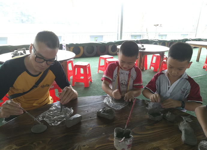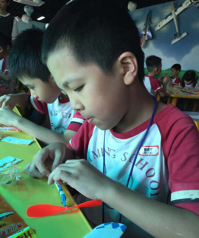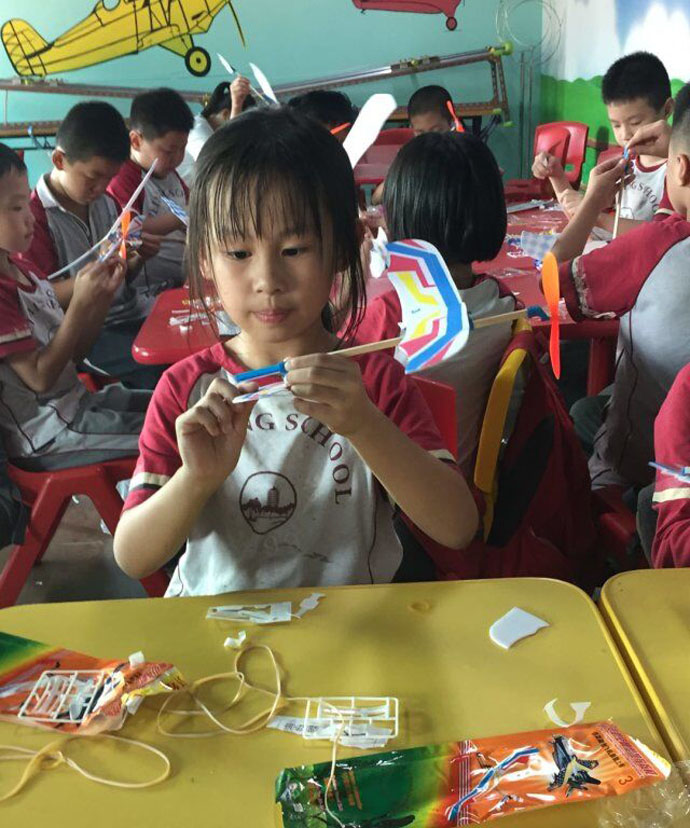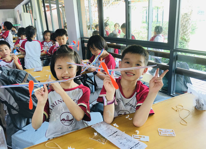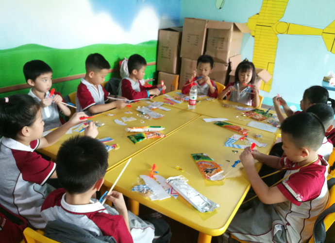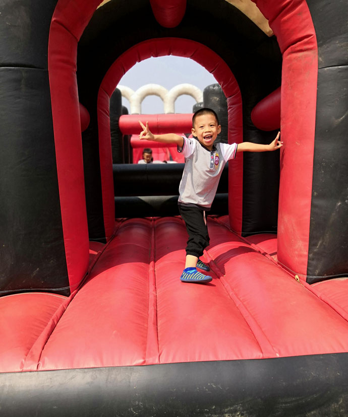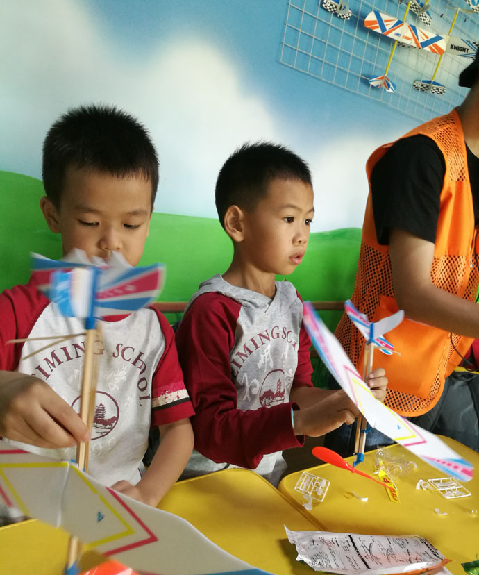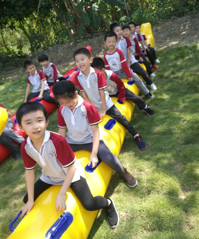 到达园区,在导游和工作人员的带领下,一二年级的孩子分别进入“六就好研学基地”各个区域逐一体验。DIY香皂、趣味陶艺、航模制作、弹射飞机等,孩子们发挥自己的想象力,制作出了形态各异的香皂、陶艺作品,一架架精美的航模飞机也在孩子们的小巧手中成功地飞了起来,他们脸上充盈着满满的欢愉!室外活动区,最吸睛的要数那几条卧在草坪上的龙。听完导游的介绍,孩子们以小组为单位开始比拼,一条条生龙活虎地在草坪上舞动起来。“多元挑战区”和“真人打地鼠”等项目人头攒动,好不热闹,也是让孩子们欢乐不已。