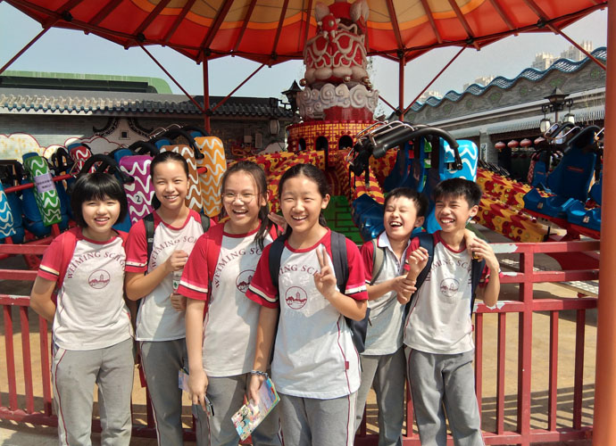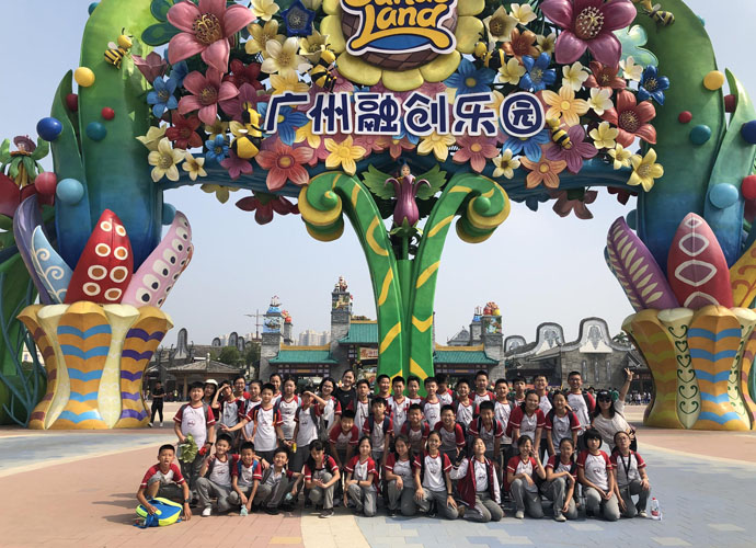 三至六年级这次研学的目的地是融创乐园。瞧,到处洋溢着为明孩子欢乐的笑声!融创是国内少有的以广东本土文化为灵感设计的乐园,设有千年商都区、海上丝路区、岭南印象区、五羊传说区、梦幻花园区 、南越古国区。本着研学为主题,孩子不仅可以在儿童游乐区尽情的体验各项娱乐设施,同时还能欣赏和了解岭南文化。踏进“千年商都”,仿如“穿越”到了南越古国,到处都是岭南韵味的古风建筑,区内商铺林立,商品琳琅满目。走进“海上丝路区”,孩子们了解到一七五七至一八五六年的广州著名商街“十三行”,拥有着通往欧洲、拉美、南亚、东洋和大洋洲的环球贸易航线等等,还有五羊的传说,也能在园区找到答案。坐上观览车穿梭在梦幻花园区,仿佛进入了童话世界,同时还能一览主题乐园内精雕细琢、鬼斧神工的美好景色。