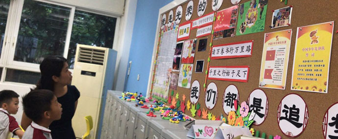 这位一年级的家长,曾为孩子是否适应新环境焦虑不已。看到小学部焕然一新的墙报,她完全放心了。