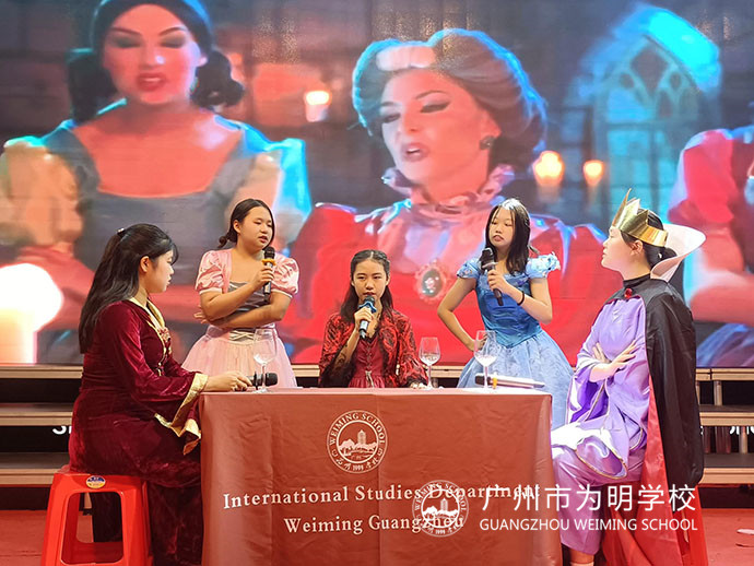 为了充分利用我校国际部资源,初中部与国际部都会开展丰富的交流活动,帮助学生进一步了解国际文化、开拓国际视野。本次英语闭幕式也得到国际部师生的大力支持,国际部同学不仅带来了优美的歌曲《Everything I Need》,更是为我们带来了迪士尼反派茶话会《Tough Love》的精彩英语配音秀,要排练这个作品,既要流利的英语,又要有动听的嗓音,还要有反派角色“后妈”的神韵,可谓难度不小!我们力争让每个孩子都能在这里建立英语学习的兴趣,享受英语的学习过程,提升英语学习的自信,拥有展示英语的舞台。
