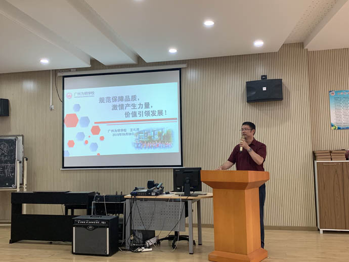 为进一步加强班主任团队建设,提高班主任的德育工作管理能力,本学年初中德育处将联合多方力量,针对全体班主任和生活教师开展系列培训活动。9月9月下午,B315会场,在第35个教师节来临之际,我们终于迎来了第一场专家培训报告会,学部特邀了广州为明学校王礼维校长开讲。此次会议由初中德育处刘飞主任主持,曹友法主任、周文涛主任、唐少生主任、黄丽华主管及初中全体班主任和小初全体生活教师参加了培训活动。