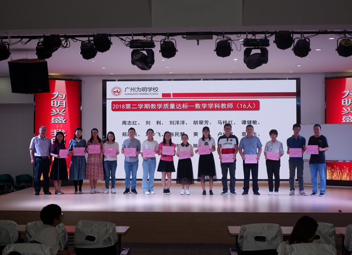学校工作,教学为重,学校发展,质量当先!为了更好地盘点回顾上学期的教育教学工作,激励优秀,反思不足再前行,11月1日,广州为明学校小学部在五楼学术报告厅隆重召开教学工作专题会议暨2018-2019(下)教学质量达标表彰会。