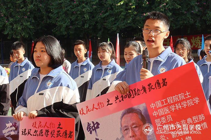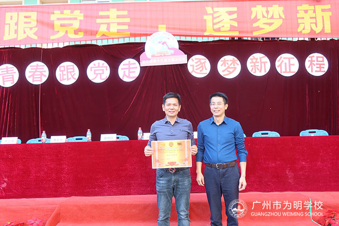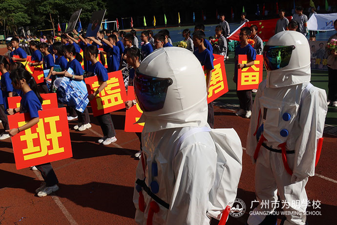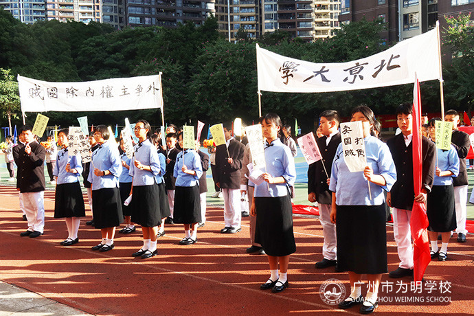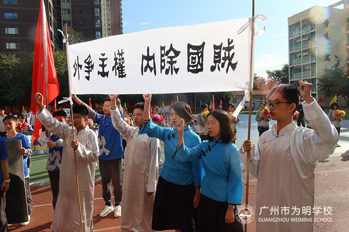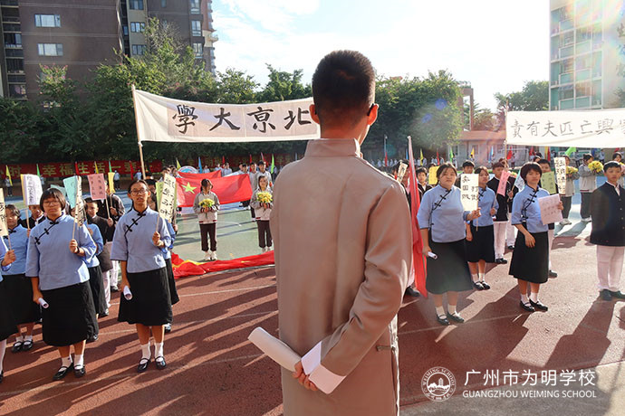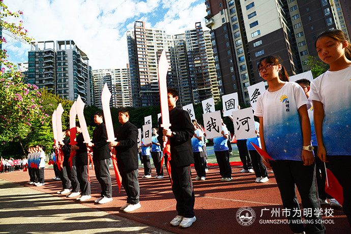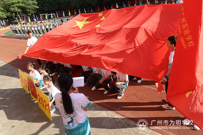 运动会的举办正值建党百年、建国72周年的光辉时刻,我们广州市为明学子要拥有报国之志、强国之心;爱国之行要建立在拥有健康体魄、健全人格之上。要学党史、感党恩、跟党走,明心志、践初心;要不负青春,心向党,秉立恒志誓报国。
