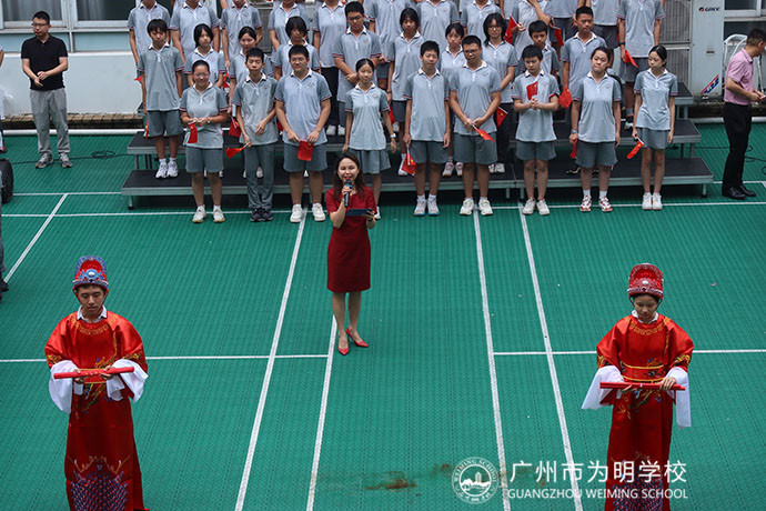 6月19日上午,一年一度的中考壮行仪式在初中部羽毛球场隆重举行,这在为明已是一项传统,给初三学长送祝福的同时,对初一初二的学弟学妹也是一种激励。