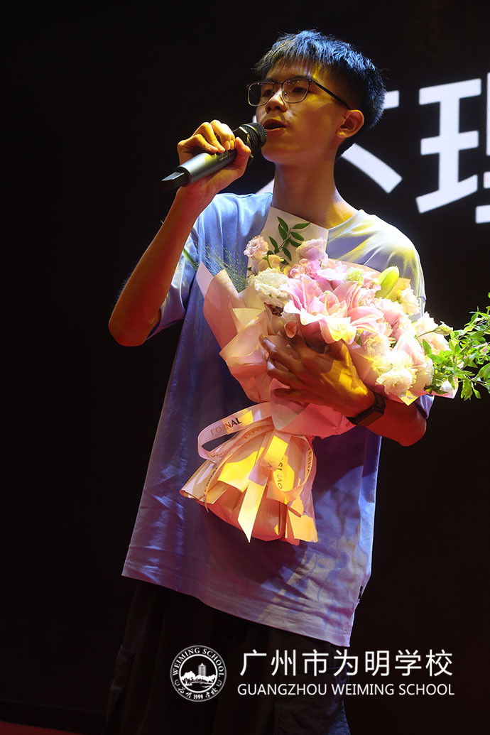 姚艾彤、李创裕、陈泽钦、周易萱等四位同学深情演唱,歌曲串烧,感谢有你,背景视频重现老师同学们的精彩瞬间,台下师生家长跟着旋律,摇动着手机的灯光。现场浓烈而感动,眼泪、温馨、感恩汇聚在那一刻。同学们沐浴在毕业季灿烂的阳光中,回首往昔,感念师恩,奔向似锦前程。