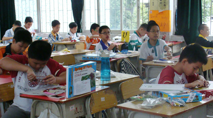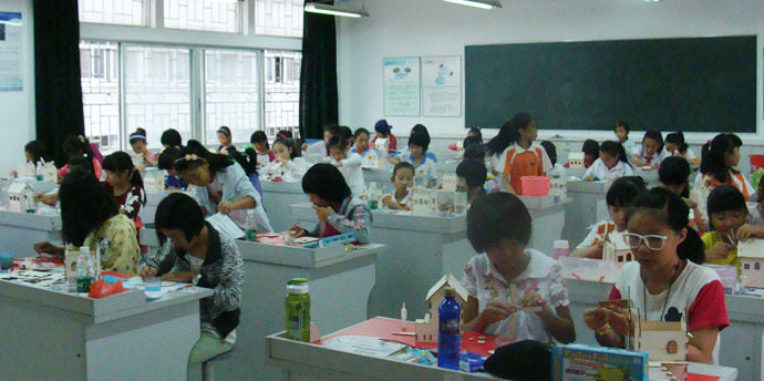 我校共10名学生代表出赛,参加的项目是:缤纷童年涂装木屋(小学男子组、小学女子组)、绿野春天花园别墅(小学女子组)、巴黎春天欧式别墅(小学男子组)、锦绣江南古典园林(小学男子组)、城市梦想规划设计(小学男子组、小学女子组)。比赛时间从90分钟到180分钟不等,选手需要在指定的时间内完成作品,中途不能离开。一份好的作品的完成,不仅需要好的手工,也需要独特的设计创造。花园别墅、欧式别墅、江南美景这些景物,很多学生在日常生活中没有真正的接触,那怎样把模型制作好呢?答案是:练习和大胆设计。在比赛前一个星期,选手们每天利用午休前的30分钟进行紧密的训练。设计方案,组装模型,创造特色等,选手们积极参与其中,也享受动手的乐趣。