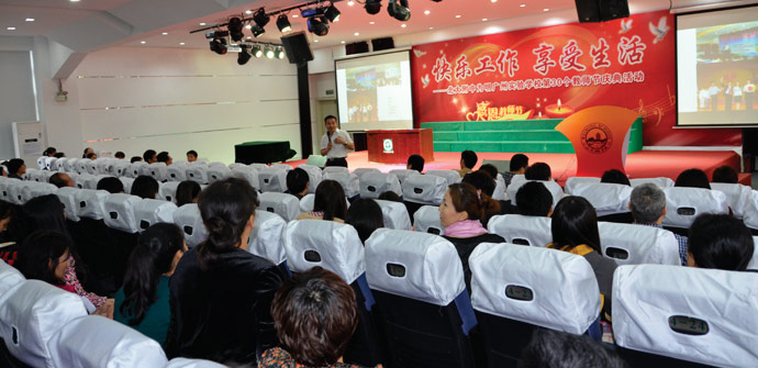 首先,钟和军副校长介绍了马来顺老师。马老师是国家心理咨询师,在美国中美精神心理研究所高级研修班结业,是中国教育学会会员、广东省中小学心理健康教育培训授课教师、广东省幼儿园园长培训中心培训师、江门幼儿师范学校讲师,长期从事心理学的研究与培训工作,在师范院校教心理学24年,心理咨询实践20年,受邀担任电台、电视台心理类教育类节目的策划和主持人,为大中小学幼儿园讲学一百多场,为党政机关、妇联、残联、团市委、海关、监狱、企业、社区和医院举办讲座、工作坊和团体训练已逾80场,社会影响力广泛,现任江门市心理卫生协会常务理事,校心理咨询室负责人。马老师治学严谨,讲课生动、幽默、充满激情、通俗易懂,今天给我们带来的“教师情绪与压力管理工作坊”的培训,一定会给我们的成长、工作、生活带来帮助!