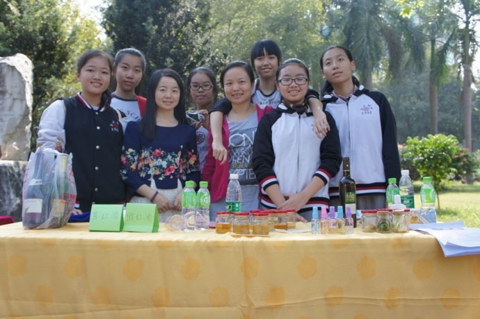 初一年级的参赛项目是《家庭必备良方——如何辨别真假红酒》,参赛学生是李达阳、夏海欣、陈逸怡,由夏秋娣老师指导;初二年级的参赛项目是《自制天然柔肤水》,参赛学生是龙女、郭嘉雯、李文婧,由张坤老师指导。两个项目分别夺得广州市一等奖、三等奖的好成绩。