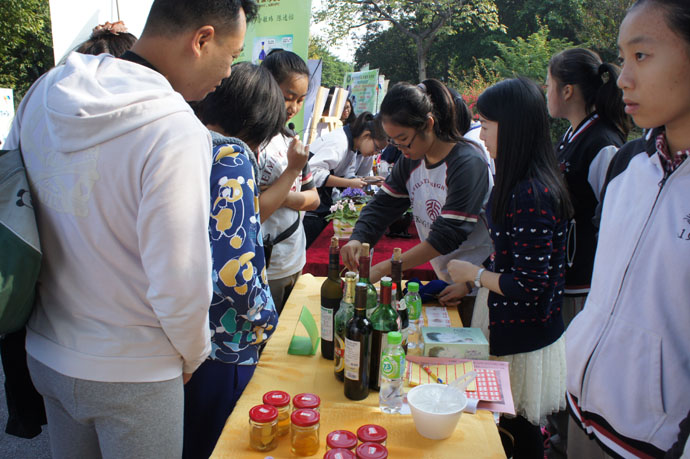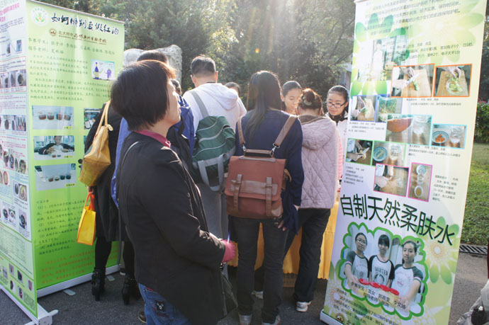 而在《自制天然柔肤水》项目中,孩子们向大家介绍了几款DIY柔肤水:青瓜柔肤水、卷心菜柔肤水、土豆柔肤水、莲藕柔肤水、南瓜柔肤水。这些环保有效的护肤秘笈,很快就吸引了一大帮参观的人群,其中也包括评委老师。有的老师还详细咨询了制作方法,表示会回家尝试一下,并有现场观众咨询合作意向。这次活动主要提升了学生自身解决问题和动手操作的能力。“这个项目很实用。”老师们这样表示。“这次比赛只是一个开始,接下来还可以从这次活动发展出更多实用项目。”孩子们回答。